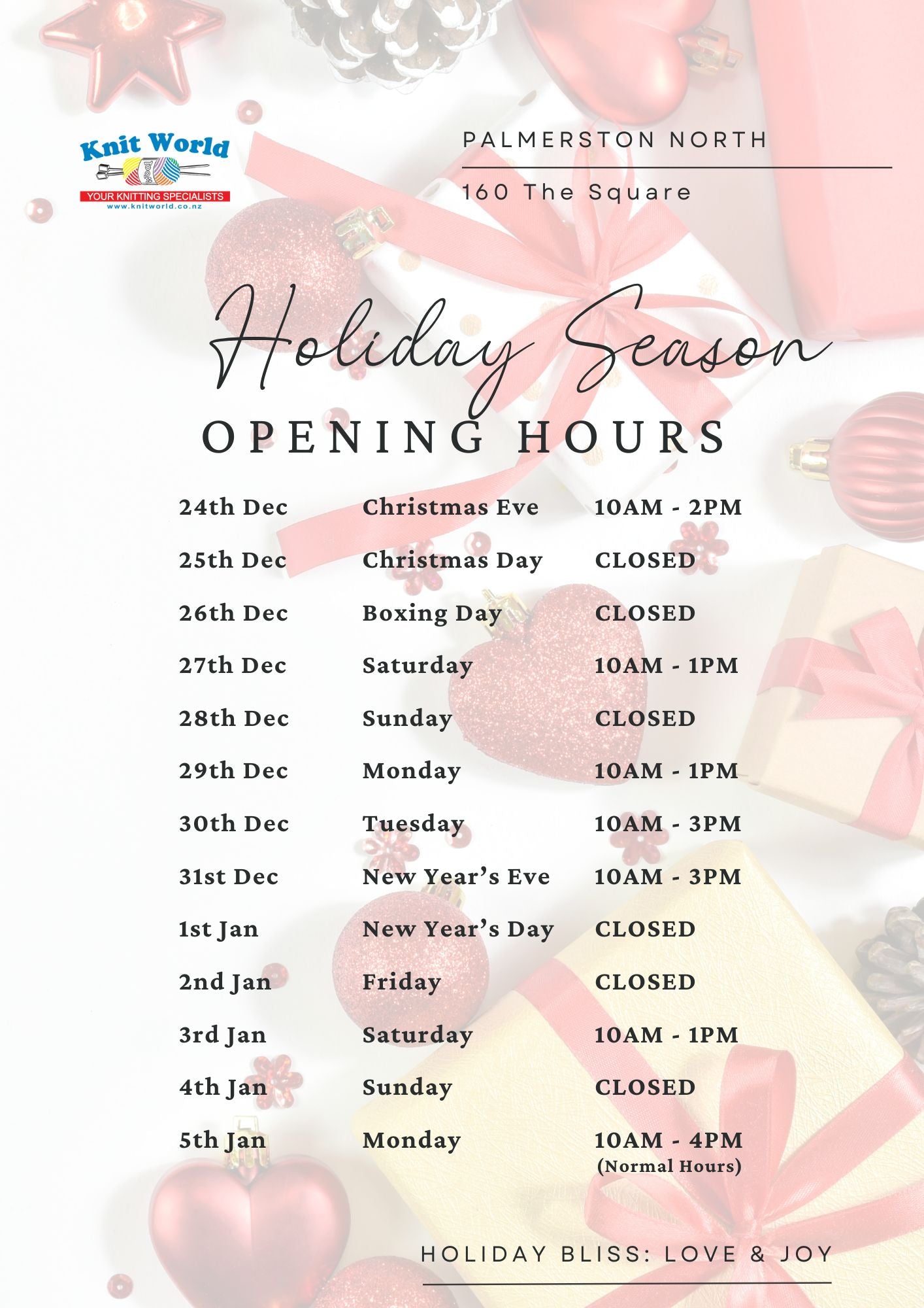 The festive season is here, and we’re ready to help with all your knitting and crafting needs! 🌟 Check out our opening hours for the holidays to plan your visits.
