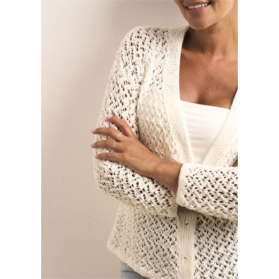 Tage is a timeless cardigan that blends classic charm with a modern touch. Knitted in MODE at Rowan Cotton DK, its airy openwork pattern creates a light, textured finish — perfect for layering through warmer months. Elegant and versatile, Tage is a true summer staple.